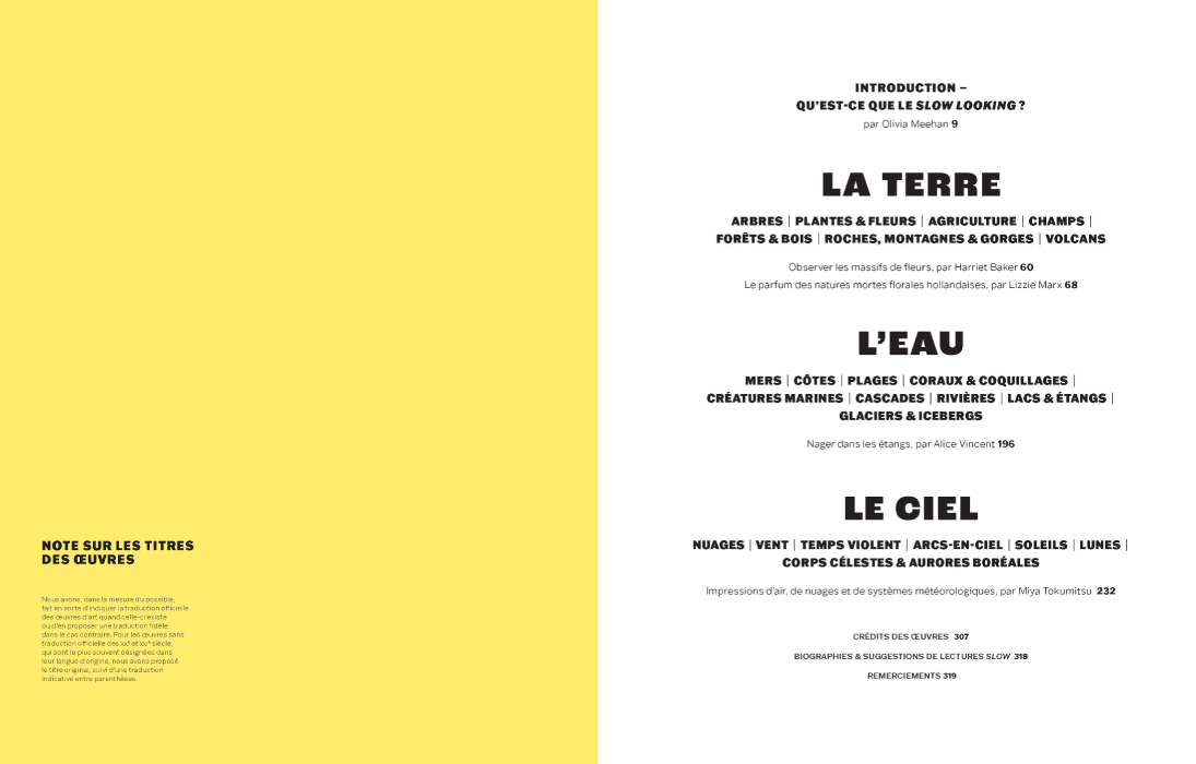 Ce livre, comme une respiration, nous fait admirer autrement la nature grâce à la vision singulière des artistes et propose un voyage unique à travers les époques et les cultures. Illustré de plus de 300 oeuvres - peintures, sculpures, photographies et objets décoratifs - minutieusement sélectionnées, cet ouvrage nous invite à poser notre regard sur les formes, les couleurs, à distinguer les techniques, à surprendre le petit animal caché, à admirer la finesse des branches du chêne, la fleur de canne à sucre en train d'éclore... Il révèle une façon simple et stimulante de contempler notre monde au naturel.