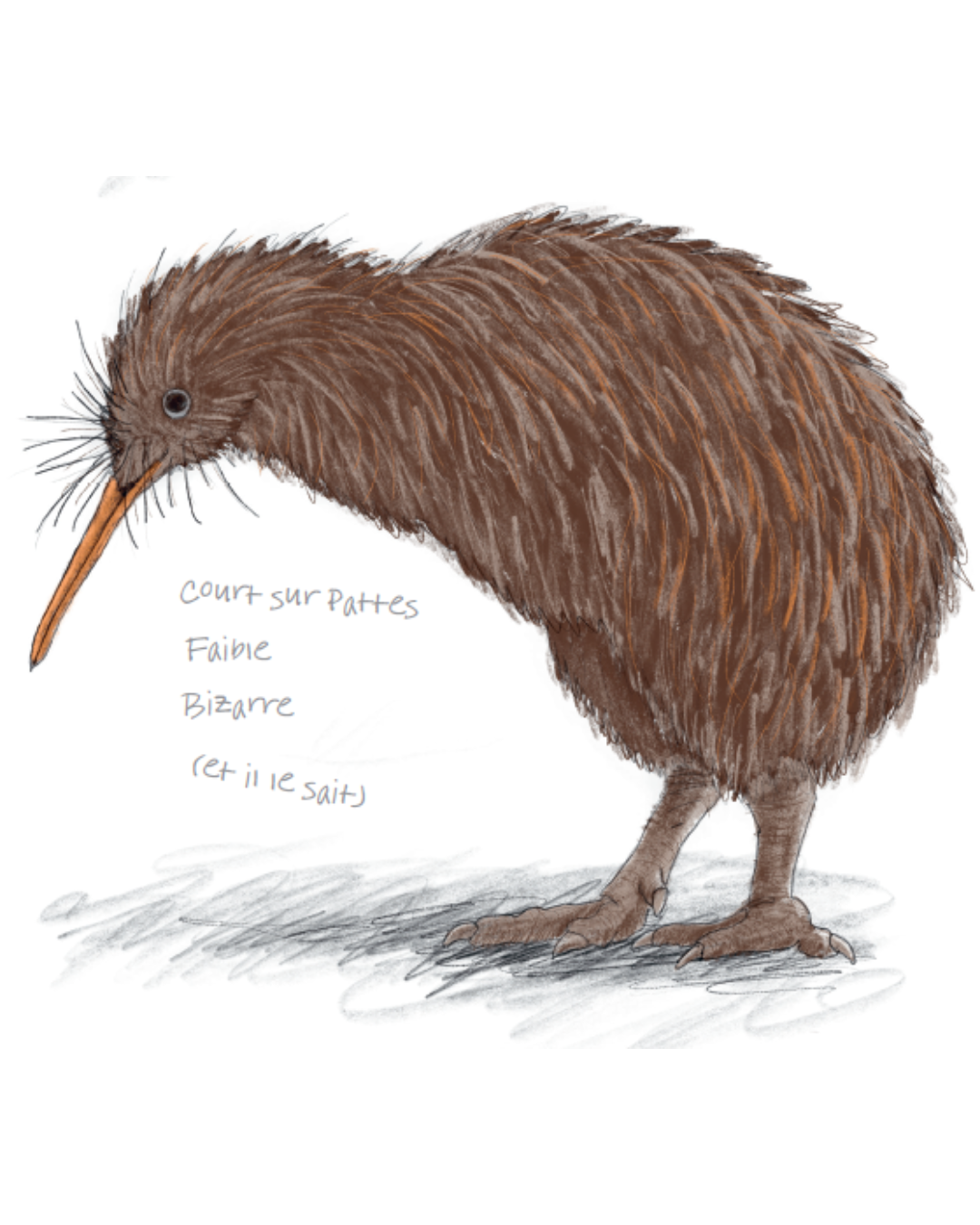 Le kiwi de Mantell (Apteryx mantelli) est un oiseau unique au monde : nocturne, incapable de voler, avec des ailes minuscules et des narines au bout du bec pour fouiller la terre. Ses œufs géants peuvent peser jusqu’à 20 % du poids de la femelle ! Symbole national en Nouvelle-Zélande, ce drôle de piaf classé « vulnérable » mérite toute notre attention. Découvrez-le, et bien d’autres encore, dans Le pire guide des oiseaux à la con.